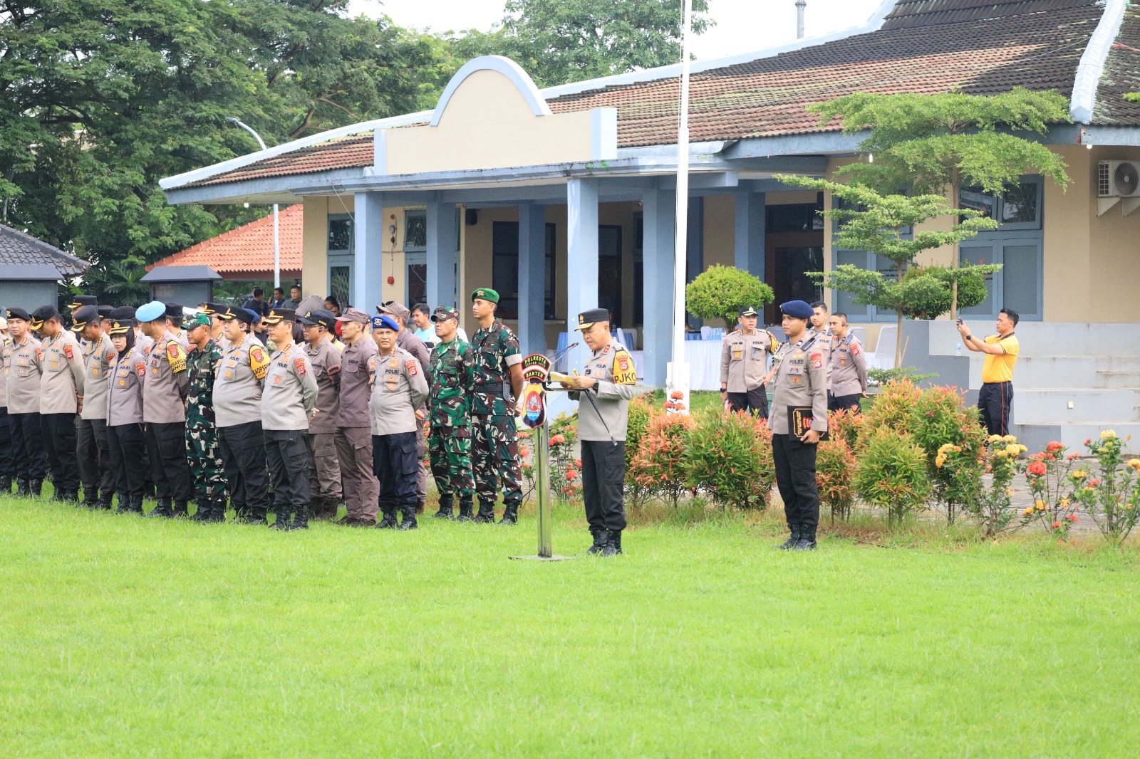 Kegiatan diawali dengan apel pagi gabungan yang dipimpin langsung oleh Kapolda Banten. Apel tersebut diikuti oleh unsur TNI–Polri, aparatur pemerintah daerah, serta berbagai elemen masyarakat yang turut berpartisipasi dalam menjaga kebersihan dan kelestarian kawasan religi Banten Lama.