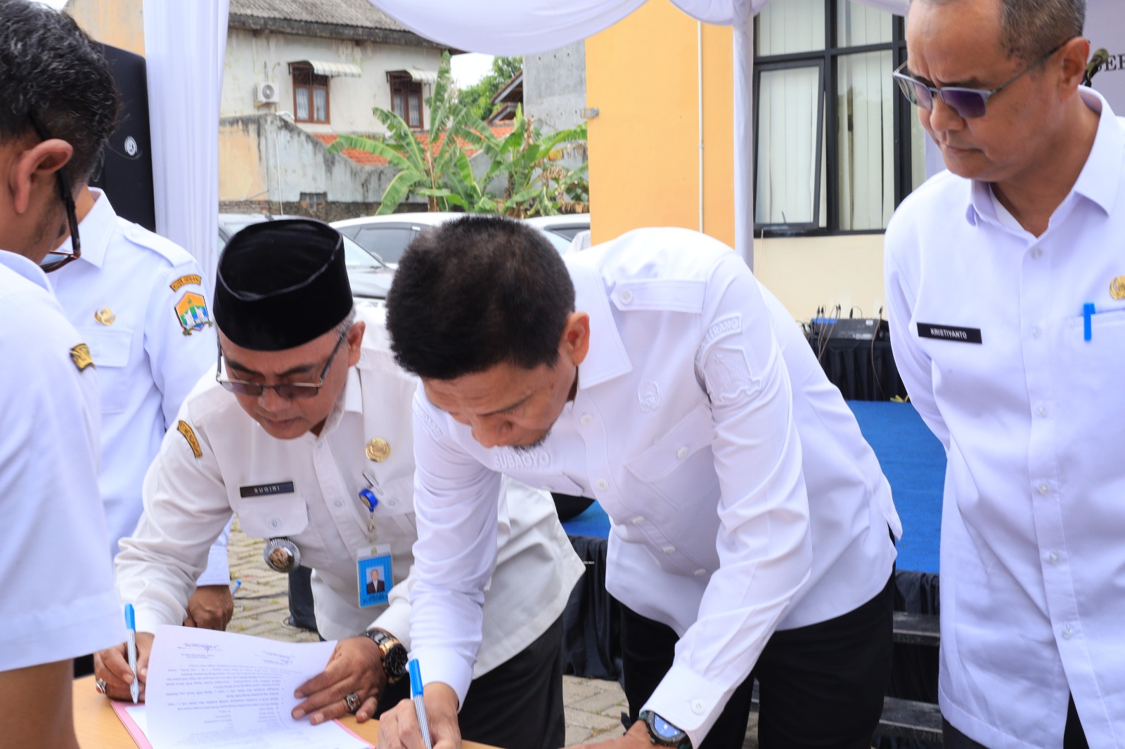 Kasemen, 05 November 2025 — Pemerintah Kota Serang tingkat Kecamatan Kasemen menggelar acara Serah Terima Jabatan (Sertijab) Camat, Sekretaris Kecamatan, para Lurah, serta Kepala Seksi di lingkungan Kecamatan Kasemen, Kota Serang. Acara berlangsung dengan khidmat di halaman kantor Kecamatan Kasemen dan dihadiri oleh Asda I Drs. Subagyo, M.Si., Kabag Pemerintahan Drs. Kristiyanto, M.Si sekaligus Camat Kasemen yang lama serta para lurah, tokoh masyarakat, dan perwakilan organisasi kemasyarakatan.